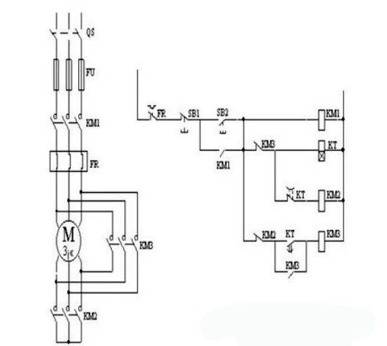 電機要實現(xiàn)正反轉(zhuǎn)控制,將其電源的相序中任意兩相對調(diào)即可(我們稱為換相),通常是V相不變,將U相與W相對調(diào)節(jié)器,為了保證兩個接觸器動作時能夠可靠調(diào)換電動機的相序,接線時應(yīng)使接觸器的上口接線保持一致,在接觸器的下口調(diào)相。由于將兩相相序?qū)φ{(diào),故須確保二個KM線圈不能同時得電,否則會發(fā)生嚴重的相間短路故障,因此必須采取聯(lián)鎖。為安全起見,常采用按鈕聯(lián)鎖(機械)與接觸器聯(lián)鎖(電氣)的雙重聯(lián)鎖正反轉(zhuǎn)控制線路(如下圖所示);使用了按鈕聯(lián)鎖,即使同時按下正反轉(zhuǎn)按鈕,調(diào)相用的兩接觸器也不可能同時得電,機械上避免了相間短路。另外,由于應(yīng)用的接觸器聯(lián)鎖,所以只要其中一個接觸器得電,其長閉觸點就不會閉合,這樣在機械、電氣雙重聯(lián)鎖的應(yīng)用下,電機的供電系統(tǒng)不可能相間短路,有效地保護了電機,同時也避免在調(diào)相時相間短路造成事故,燒壞接觸器。