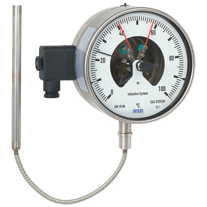 當(dāng)過(guò)程溫度需要就地顯示或在難以接近的地方顯示,同時(shí)又必須切換電路時(shí),可以使用帶電接點(diǎn)的氣包式溫度計(jì)。