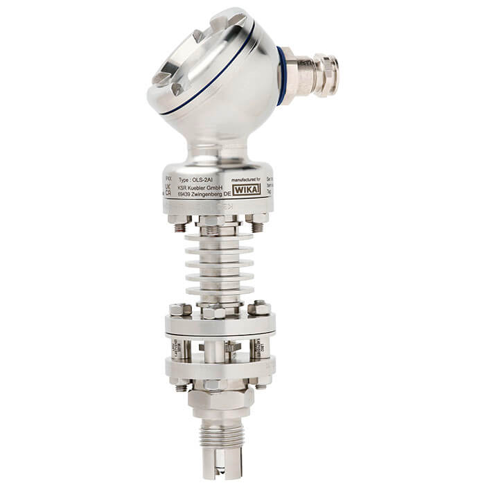 OLS-2型液位限位開關(guān)由一個(gè)紅外LED和一個(gè)光電晶體管組成,其中LED的光線被導(dǎo)向到棱鏡。只要棱鏡的傳感器尖端處于氣相中,光線就會(huì)在棱鏡中反射至接收器。如果容器中的液位上升并浸濕玻璃尖端的大約2/3,進(jìn)入液體的紅外光束則會(huì)中斷,只有少部分到達(dá)接收器。