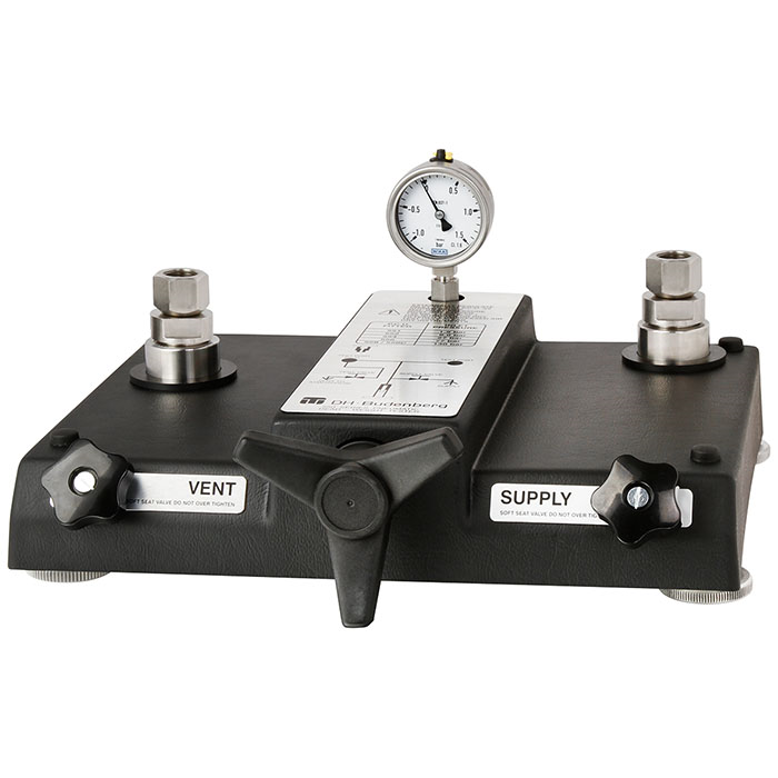 對于壓力比較泵工作中的精密設置,可以通過其自身攜帶的精密可調(diào)容積閥來實現(xiàn)。連接外部壓力或者真空的接頭在后面板上。兩個測試接頭的螺紋規(guī)格是G ?母螺紋。另外,還有很多不同規(guī)格的螺紋轉(zhuǎn)接頭可選擇。